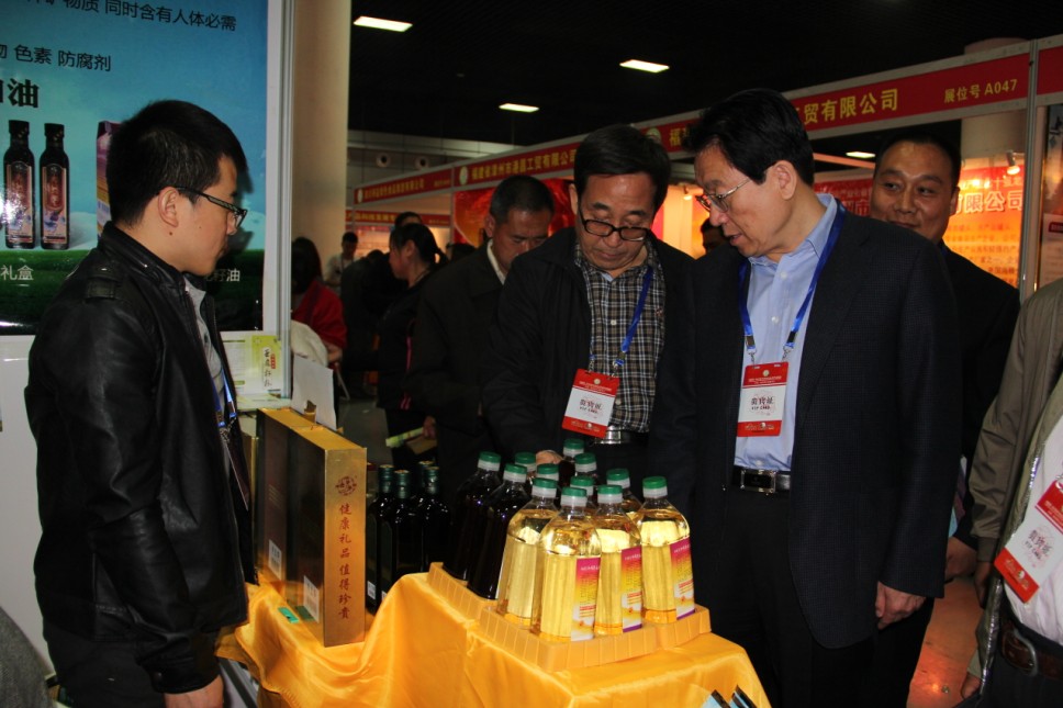 農(nóng)牧業(yè)廳副廳長云挨厚參觀內(nèi)蒙古恒豐食品工業(yè)(集團)股份有限公司展位  農(nóng)牧業(yè)廳副廳長云挨厚參觀呼和浩特市暢香遠植物油廠展位