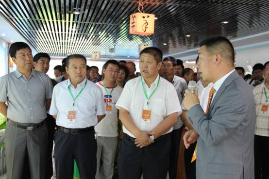 蒙羊牧業(yè)總裁閆樹春向來賓介紹蒙羊牧業(yè)工廠