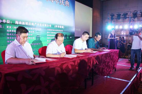 內(nèi)蒙古農(nóng)牧業(yè)產(chǎn)業(yè)化龍頭企業(yè)協(xié)會執(zhí)行會長林永亮、內(nèi)蒙古新蒙商聯(lián)合會秘書長馬廣、海南省內(nèi)蒙古商會執(zhí)行秘書長高華章、內(nèi)蒙古保全農(nóng)產(chǎn)品科技發(fā)展有限公司總經(jīng)理白龍簽署了內(nèi)蒙古海南綠色產(chǎn)品雙向輸出合作協(xié)議