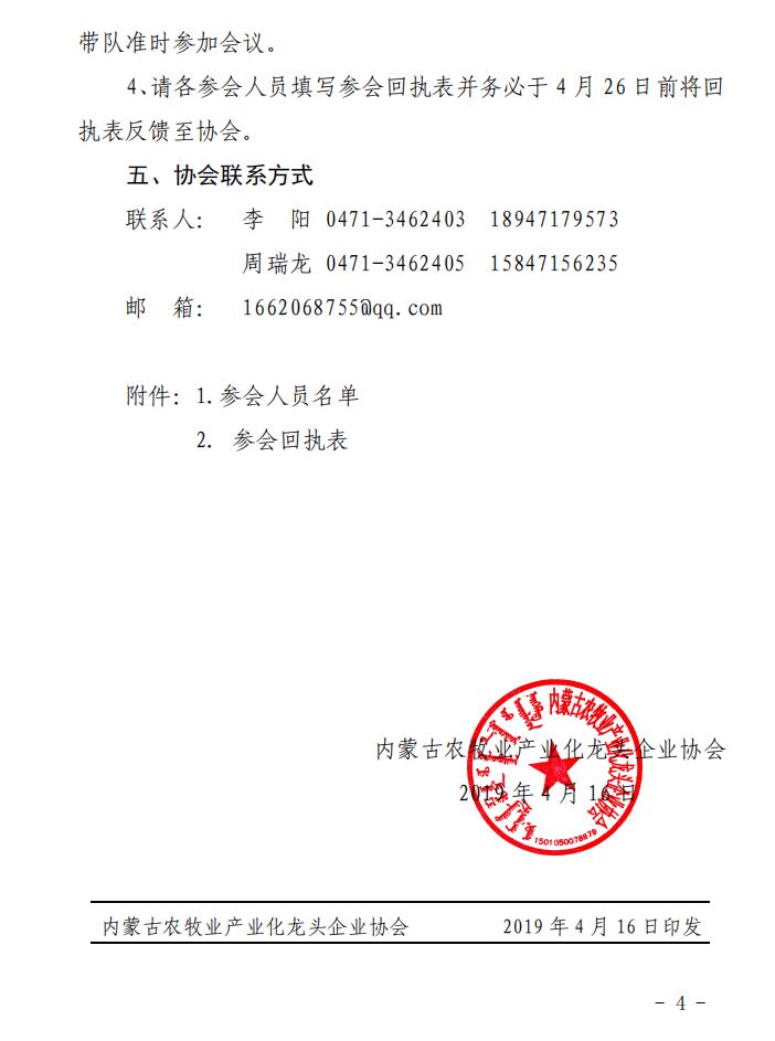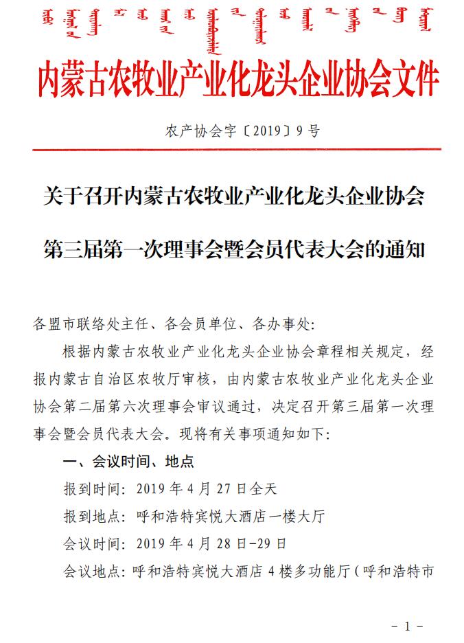 標題:關于召開內蒙古農牧業(yè)產業(yè)化龍頭企業(yè)協(xié)會第三屆第一次理事會暨會員代表大會的通知