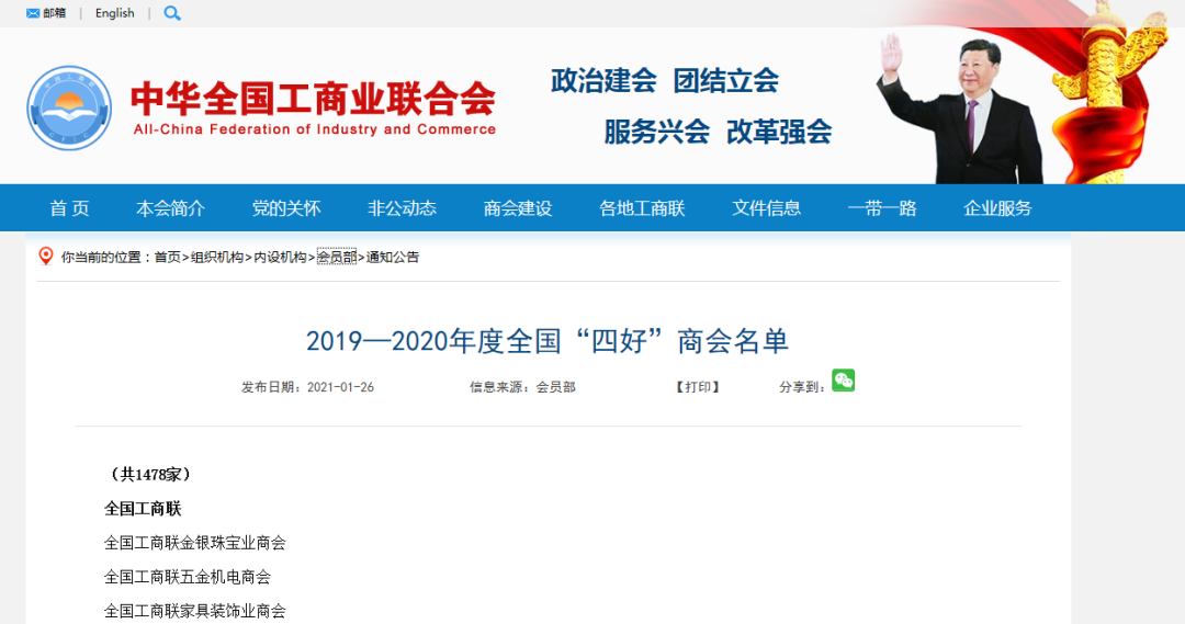 榮獲全國(guó)“四好”商會(huì)榮譽(yù)稱號(hào)
