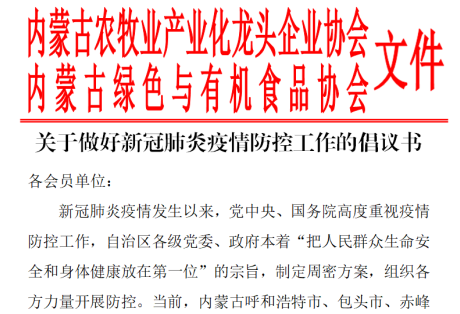 標題:眾志成城,抗擊疫情—內蒙古農牧業(yè)產(chǎn)業(yè)化龍頭企業(yè)協(xié)會在行動