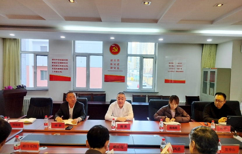 20241226日下午,中共內(nèi)蒙古自治區(qū)委員會社會工作部副部長成紅亮,處長格日樂圖、自治區(qū)農(nóng)牧廳二級巡視員、人事處處長鄭風忠,副處長賀秀山等一行6來協(xié)會調(diào)研指導工作,協(xié)會會長周勇出席會議,會議由協(xié)會秘書長呼群主持。