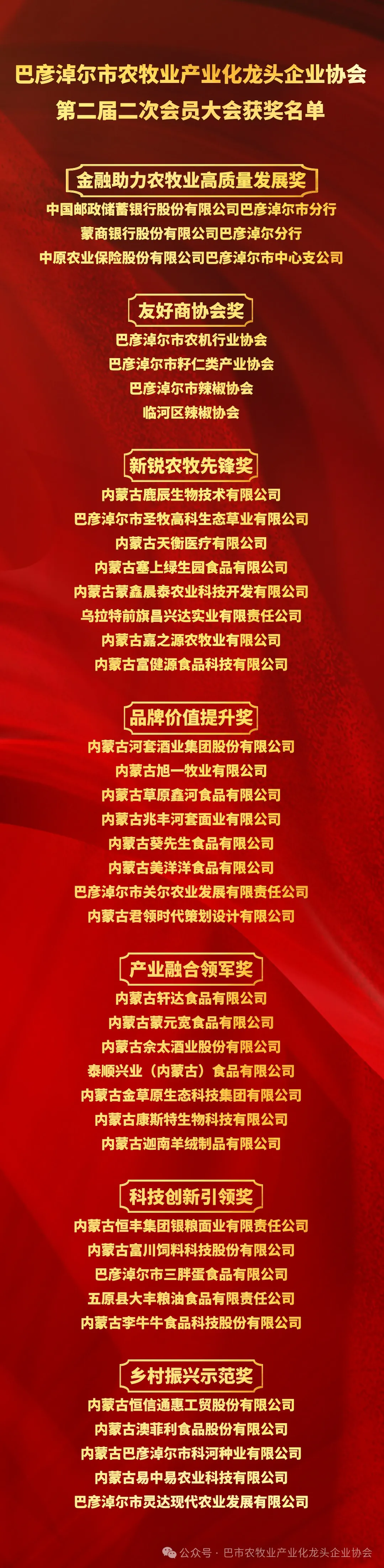 標(biāo)題:巴彥淖爾市農(nóng)牧業(yè)產(chǎn)業(yè)化龍頭企業(yè)協(xié)會(huì)第二屆二次會(huì)員代表大會(huì)成功舉辦