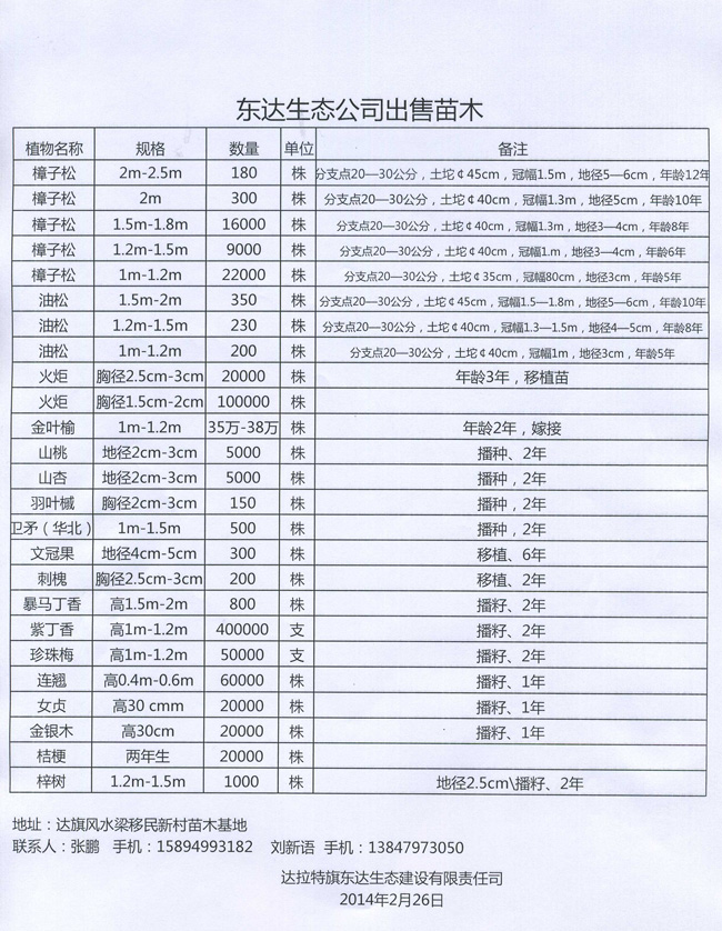 東達生態(tài)公司出售苗木