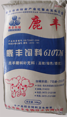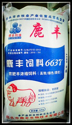 B、育肥羊濃縮飼料:執(zhí)行標(biāo)準(zhǔn)Q/BLFS02-2013,主要原料組成:豆粕、菜粕、棉粕、DDGS、石粉、磷酸氫鈣、食鹽、復(fù)合預(yù)混料等。產(chǎn)品成分保證值:粗蛋白≧35.0,粗纖維≦14.0,粗灰分≦20.0,鈣1.8-4.0,總磷≧0.8,鹽1.0-2.0,水分≦14.0、賴(lài)氨酸≧0.8。