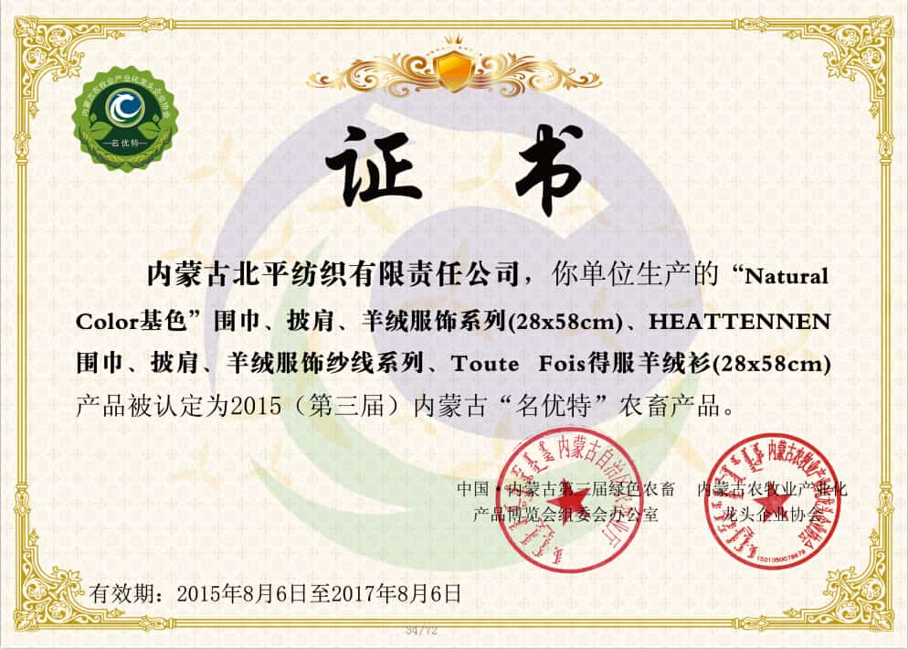 內(nèi)蒙古北平紡織有限責(zé)任公司是一家集設(shè)計(jì)、生產(chǎn)和銷售為一體的國際化羊絨制品集團(tuán)公司。公司總部及生產(chǎn)基地位于內(nèi)蒙古呼和浩特市金山開發(fā)區(qū)。公司下轄有:集企劃、設(shè)計(jì)、營銷于一體的全資海外子公司和連通國內(nèi)外流通貿(mào)易樞紐的上海北田共貿(mào)易公司。 公司成立于2005年,總占地面積60000多平方米,建筑面積30...