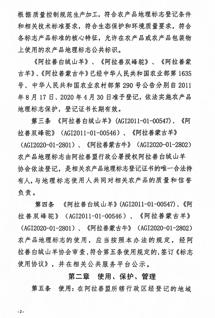 阿拉善白絨山羊協(xié)會所持有農(nóng)產(chǎn)品地理標(biāo)志管理辦法(試行)