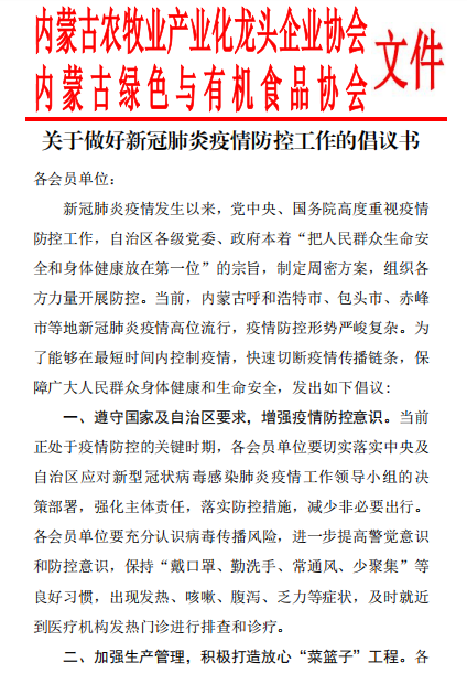 關于做好新冠肺炎疫情防控工作的倡議書