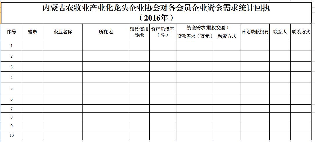 關(guān)于向各會員企業(yè)征集金融貸款需求的通知