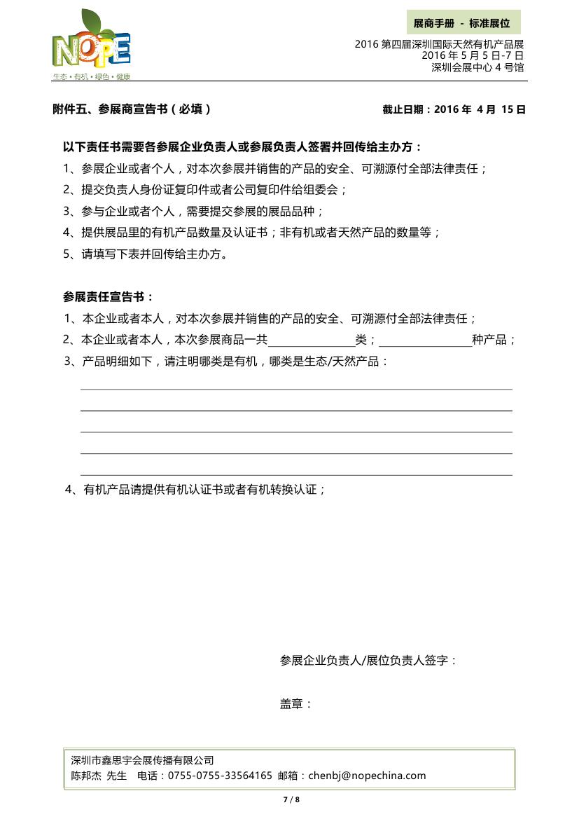 附件1:標(biāo)準(zhǔn)展位必填-2016第四屆深圳國(guó)際天然有機(jī)產(chǎn)品展-XXX公司名.doc