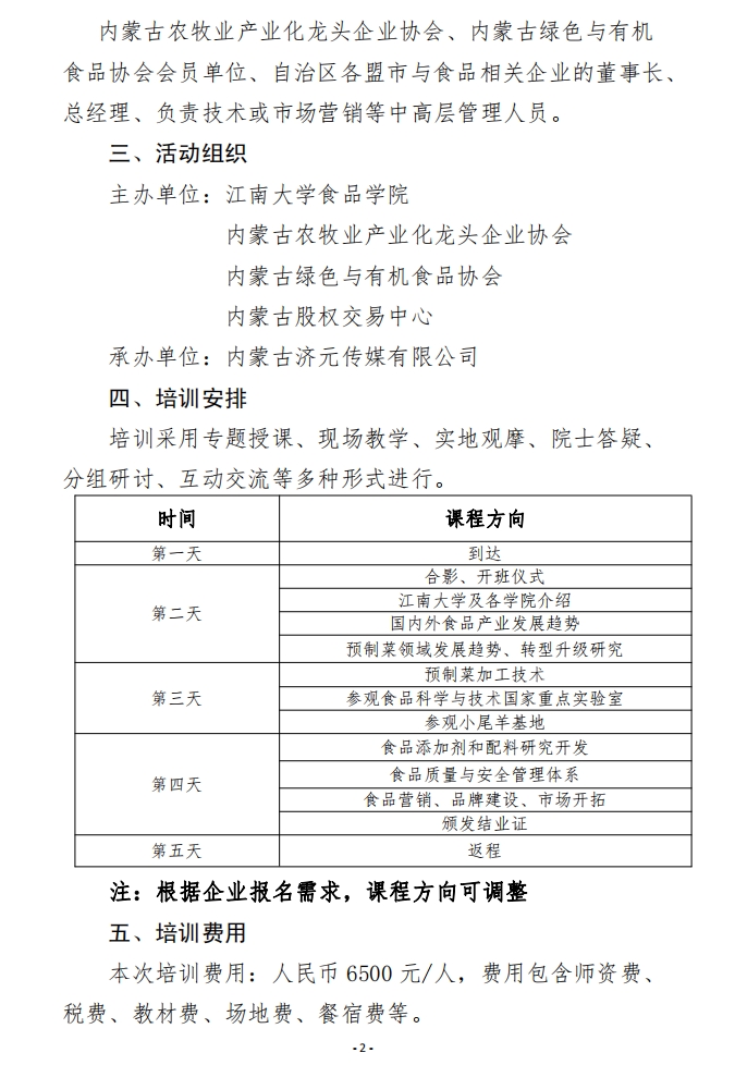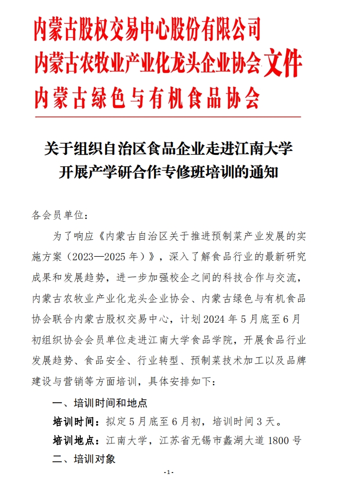 關于組織自治區(qū)食品企業(yè)走進江南大學開展產(chǎn)學研合作專修班培訓的通知