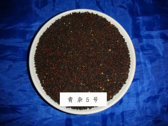 青雜5號(hào)品種為甘藍(lán)型春性質(zhì)不育三系雜交種。全生育期134天左右,與對(duì)照青雜1號(hào)相當(dāng)。幼苗半直立,葉色深綠,有裂葉23對(duì),葉緣波狀,臘粉少,無(wú)刺毛?;ò挈S色,花冠橢圓形,花瓣側(cè)疊。株高171厘米左右,分枝部位62厘米左右,勻生分枝。平均單株有效角果數(shù)221.2個(gè),每角粒數(shù)25.7粒,千粒重3.9