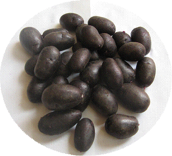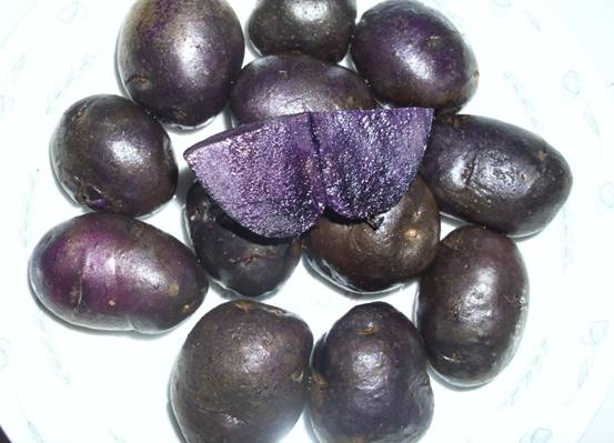黑美人經(jīng)甘肅省農(nóng)業(yè)科學(xué)院農(nóng)業(yè)測試中心檢測(NO.R41-AP-2006)測定淀粉含量12%,每千克黑美人中含粗淀粉119.7克,還原糖3.49克,每百克黑美人中含蛋白質(zhì)2.45克,脂肪0.1克,每百克黑美人中微量元素及維生素含量為:碳水化合物16.5克,維生素C21.7毫克。其黑紫色的原因是富含Delphindin(紫色)花青素,經(jīng)北京譜尼理化分析測試中心檢測(檢測報(bào)告編號(hào)為:SH061204-014)其花青素含量為每百克4.28毫克。該品種除營養(yǎng)豐富外,其富含的花青素還具有抗癌、抗衰老、美容和防止高血壓等多種保健作用