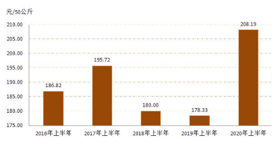 4   20162020年上半年全區(qū)玉米收購價格對比圖