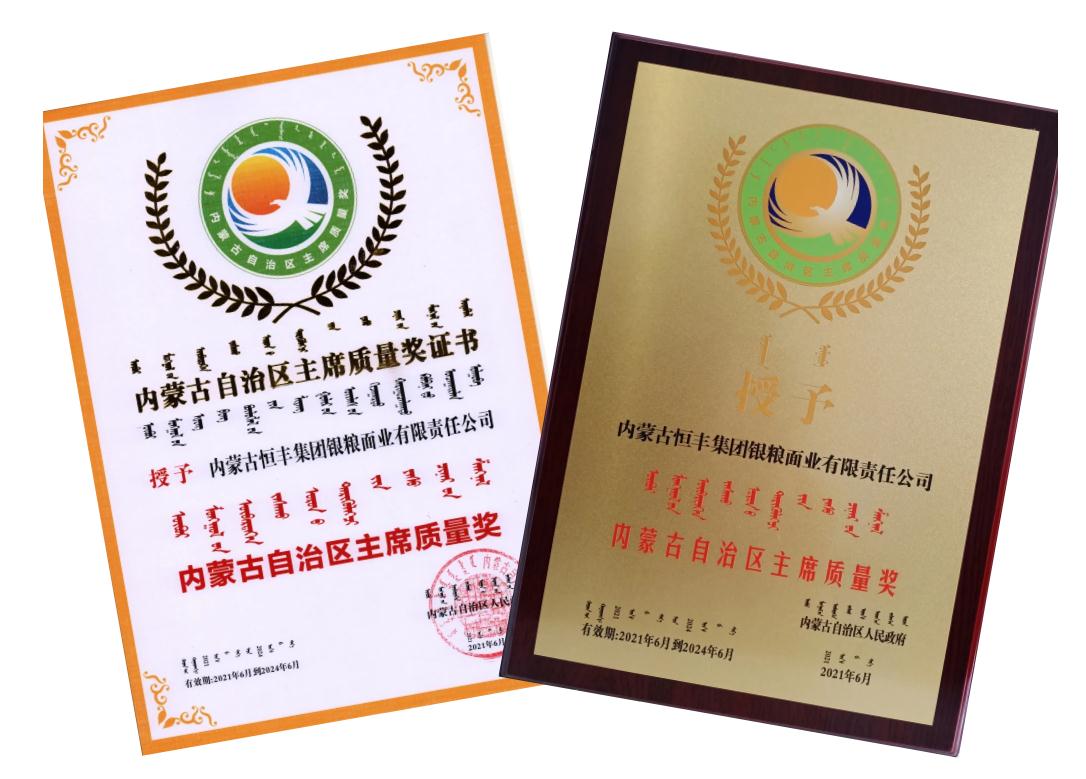 內(nèi)蒙古自治區(qū)人民政府授予5家企業(yè)2020年度自治區(qū)主席質(zhì)量獎